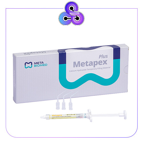 مادهای است که به صورت سمان برای کانالهای عفونی، ترمیمهای ریشه و کاربردهای دندانپزشکی کاربرد دارد.برای فیلینگ کامل کانال در کانالهایی که منطقه اپکس باز است، یا در تحلیل رفتگیهای داخلی و خارجی ریشه و تشکیل دیواره سخت در انتهای کانال استفاده میشود.این ماده پس از کارگذاری در کانال و حداکثر پس از سه روز کاملا سخت میشود و خارج کردن آن از کانال تنها به وسیله فایلReEndo و یا ماده حلال کلروفرم امکان پذیر میباشد.متاپکس همچنین در دندانهای بزرگسالان نیز به عنوان یک ماده فیلینگ موقت کاربرد دارد.کلسیم هیدروکساید متاپکس متابایومد در کانالهای شیری بیشترین کاربرد را دارد.جهتسیل کردن ناحیه AC کانال ریشه قابل استفاده میباشد.برای کانالهای لیکیجدار و اپکسیفیکاسیون مناسب است.کلسیم هیدروکساید سرنگی(متاپکس) متابایومد به صورت 1 عدد سرنگ 2.2 گرم عرضه میگردد.