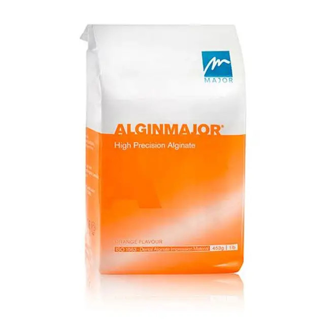 آلژینات – Algin Major: – سیالیت بالا – تاریخ انقضا بالای یک الی دو سال – ضد حساسیت – بدون سرب و کادمیوم – سازگاری عالی با انواع گچها – دارای تاریخ مصرف طولانی (6 سال) – طعم: میوه استوایی – ثبات حجمی عالی – ماندگاری تا 5 روز – مقاومت بالا در برابر فشار و تغییر شکل – پودر بدون گرد برای قالبگیری بهتر و تمیز کردن آسان – مخلوط شدن سریع و آسان با آب و ایجاد ترکیبی یکدست – رنگ: نارنجی – رایحه: پرتقالی