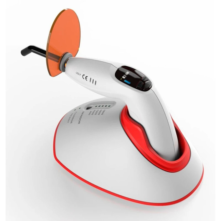 لامپ LED نسل سه Multi-Wave طول موج ۳۸۵ الی ۵۱۵ نانومتر – پرفروش ترین مدل لایت کیور در جهان – هندپیس ارگونومیک تفنگی، نمایشگر OLED – شدت اشعه ۱۶۰۰ میلی وات بر سانتی متر مربع – کیورینگ تا عمق ۶ میلی متر در تنها سه ثانیه – دارای پروب بلیچینگ و تستر اشعه روی پایه دستگاه – باتری پرتوان با ظرفیت بالا (۵۰۰ نوبت استفاده،۷۰ روز Standby) – دارای سه حالت کاری: Low Mode – Turbo Mode – Normal Mode – زمان قابل تنظیم بین ۳ تا ۴۰ ثانیه، زاویه تابش ۶۵ درجه