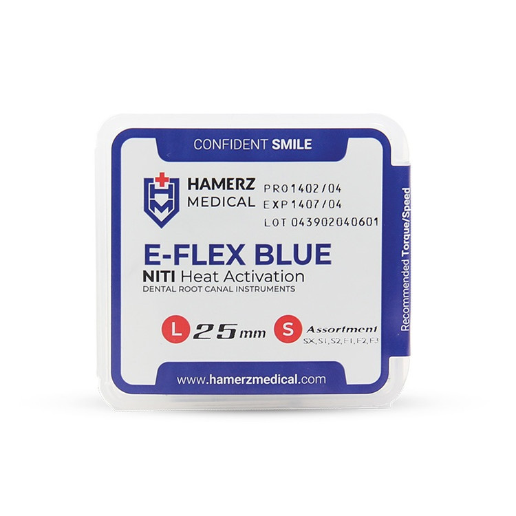 یک ابزار روتاری اندودانتیکس با انعطافپذیری بالا است که به طور خاص برای عبور از کانالهای منحنی طراحی شده و مقاومت عالی در برابر شکست پیچشی و خستگی سیکلی دارد. این محصول در دو رنگ طلایی (گلد) و آبی (بلو)، در سیستمهای مختلف تیپر 04/0، 06/0 و پروتیپر برای انواع آناتومیهای کانال، سیستمی همهجانبه و مناسب ارائه میدهد. E-Flex Files با کارایی برش عالی و انعطافپذیری بالا، گزینهای مناسب برای به حداقل رساندن احتمال تشکیل لِج، اکستروژن اپیکال و ترنسپورت کانال است. بهرهمندی از تکنیکهای متفاوت تولید و داشتن پیچ (Pitch) متغیر، E-Flex Files را از قفل شدن محافظت میکند و درمان ایمنی را به ارمغان میآورد. سیستم بلو مناسب برای درمان کانالهای ریشه پیچیده مانند کانالهای منحنی، باریک و کلسیفیه انعطافپذیری بالاتر نسبت به سیستم گلد