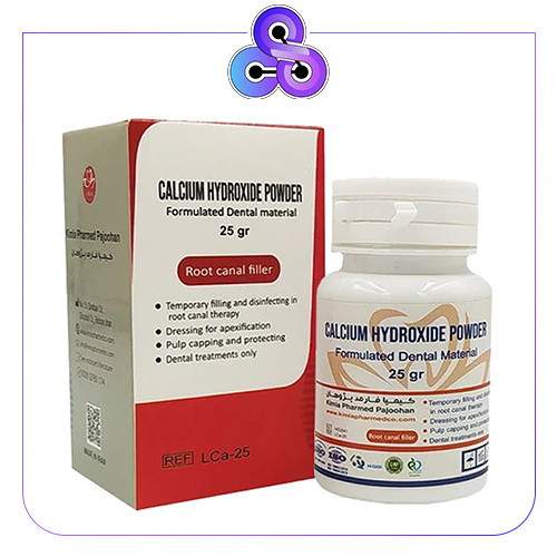 محصول پودر کلسیم هیدروکساید یک ماده دندانی با کاربردهای متنوع است در ترکیب با آب دیونیزه و یا سرم فیزیولوژی خمیری ایجاد می شود به عنوان پانسمان در انواع درمانهای اپکسیفیکاسیون، پوشاندن پالپ دندانی به صورت مستقیم و غیر مستقیم و نیز بهپوشاندن پالپ دندانی به صورت مستقیم و غیر مستقیم بیس لاینر در زیر رستوریشن استفاده می شود. به صورت کلی این ترکیب منجر به تحریک فرآیندهای احیای کننده در بافتهای پری- اپیکال و ممانعت از تحلیل رفتن استخوان میگردد.